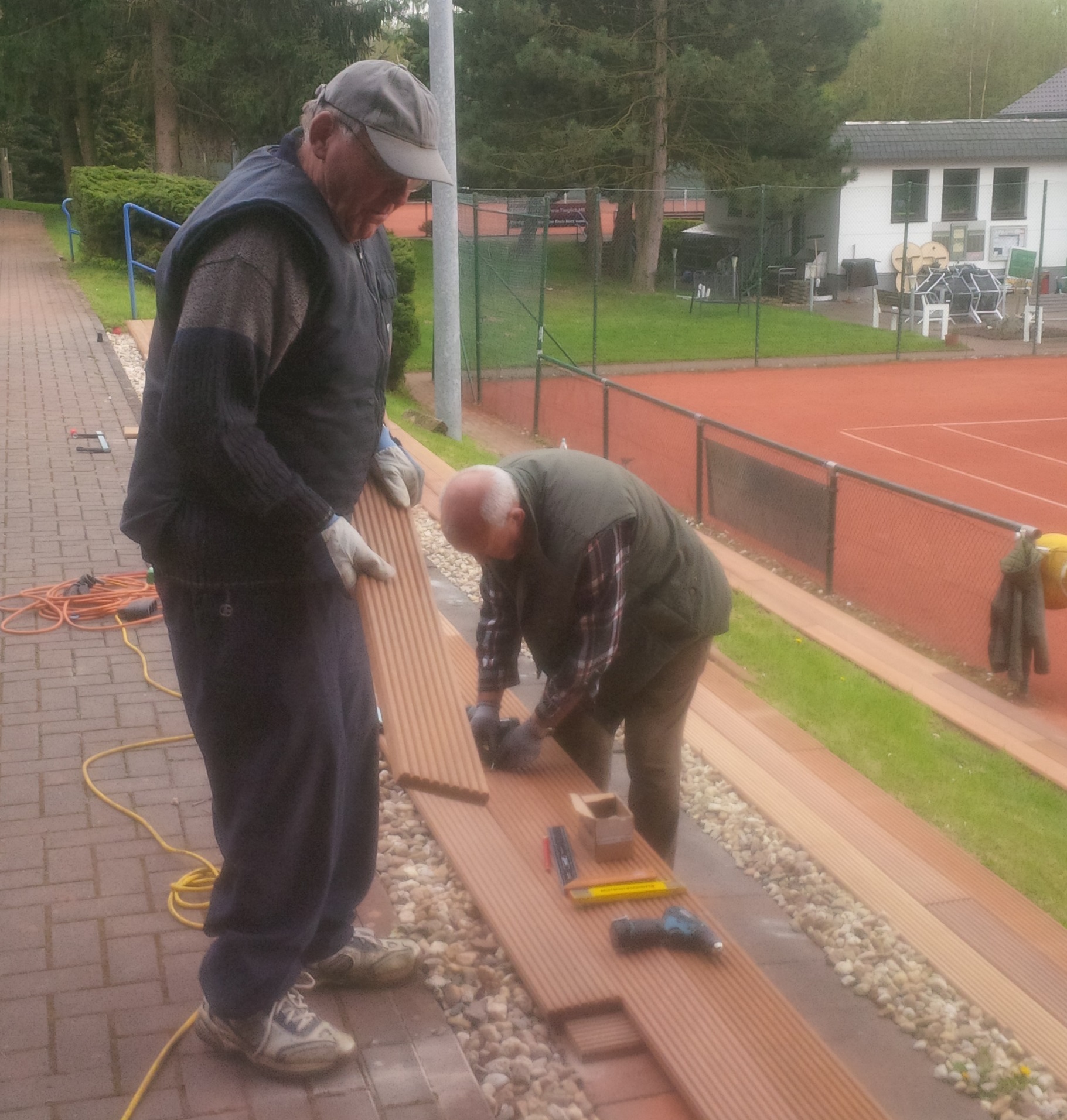 Pünktlich zur Saisoneröffnung sind die Arbeiten an unserer Tribüne abgeschlossen worden. Das Team bestehend aus Peter Zorn, Norbert Achterholt und Kurt Voss hat in Rekordzeit die alten defekten Sitzschalen und maroden Bretter demontiert und diese mit neuen Belägen aus Bankirai ersetzt.