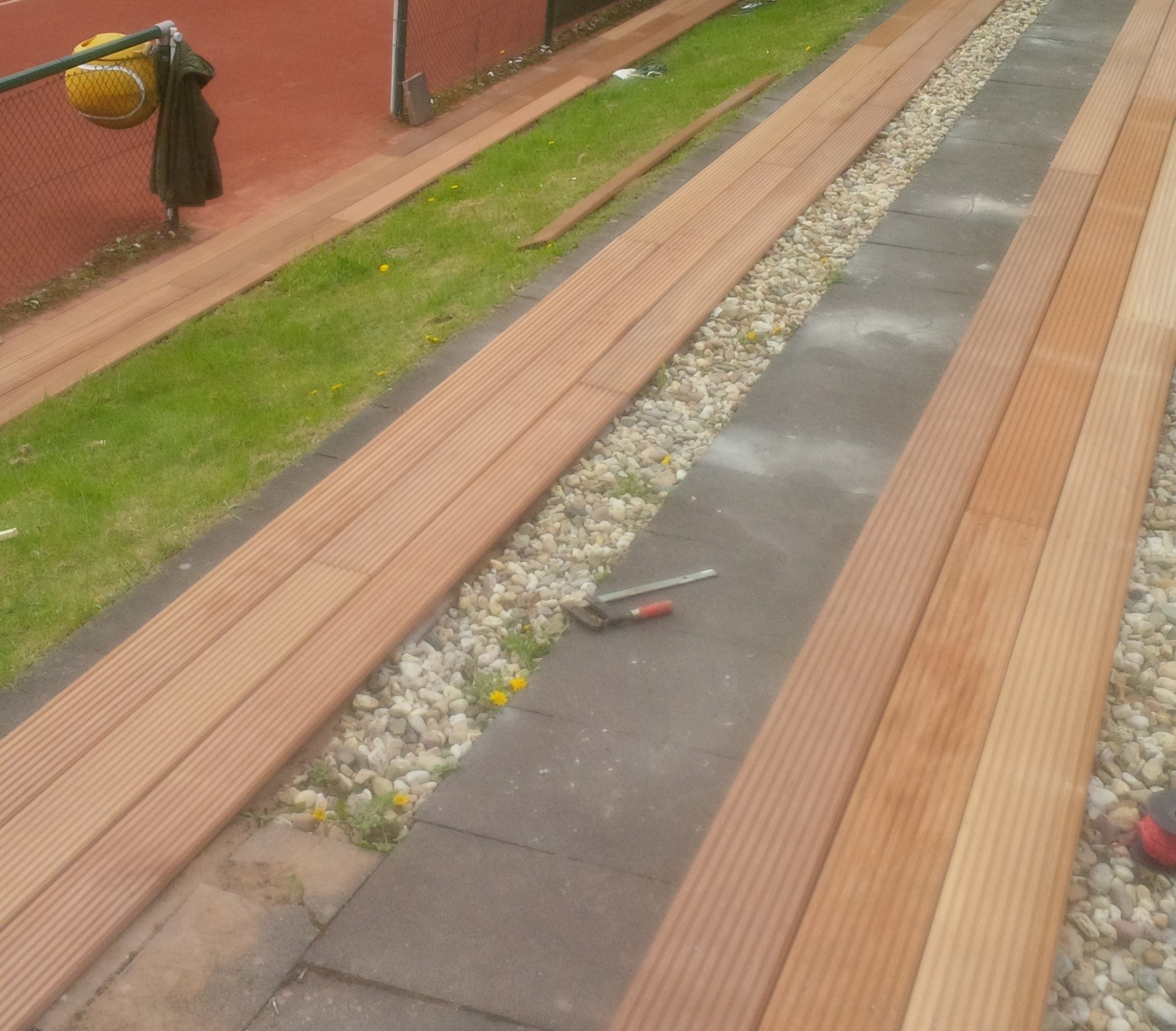 Pünktlich zur Saisoneröffnung sind die Arbeiten an unserer Tribüne abgeschlossen worden. Das Team bestehend aus Peter Zorn, Norbert Achterholt und Kurt Voss hat in Rekordzeit die alten defekten Sitzschalen und maroden Bretter demontiert und diese mit neuen Belägen aus Bankirai ersetzt.